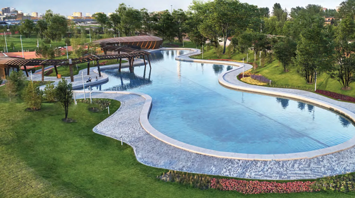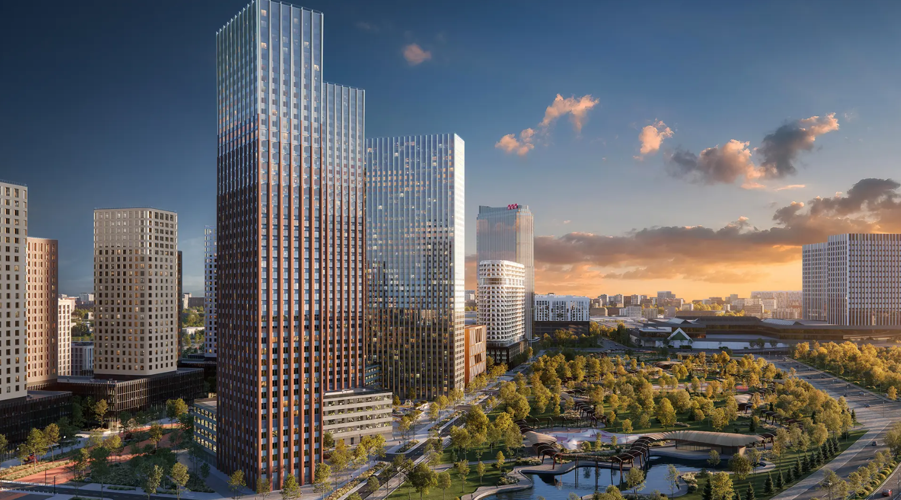 Проект нового жилого микрорайона на берегу Москвы-реки всего в 5 км от Кремля предлагает уникальное сочетание жилой, деловой, рекреационной и образовательной зон на территории 65 га.