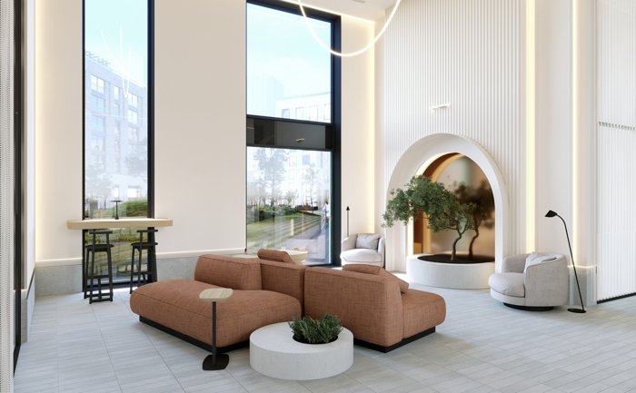 Насыщенное идентичное пространство, подчёркнутое плавностью природных форм.