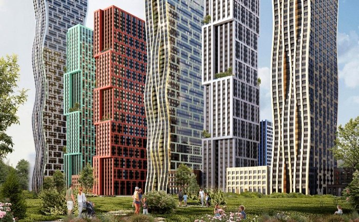 Жилой комплекс состоит из 14 монолитных зданий разной высоты — от 12 до 69 этажей. Архитекторы из бюро «SPEECH» разработали уникальный проект. Фасады зданий напоминают волны. Светлая цветовая гамма с серыми оттенками подчеркивает этот образ. В зависимости от угла зрения и освещения здания выглядят по-разному, создавая ощущение движения воды.