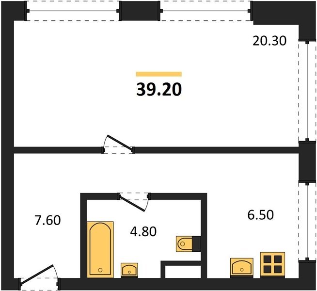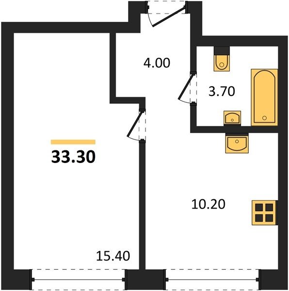 Площадь от 33.3 м2