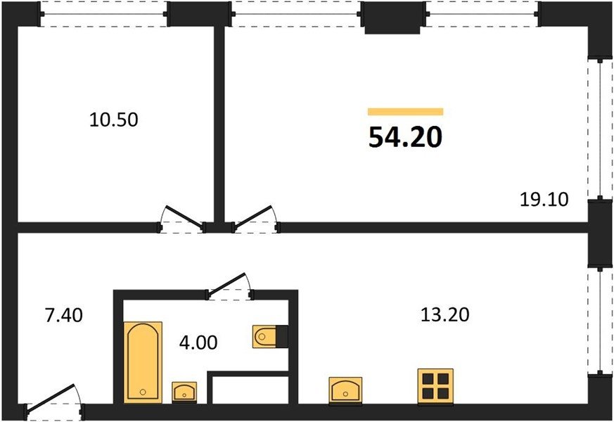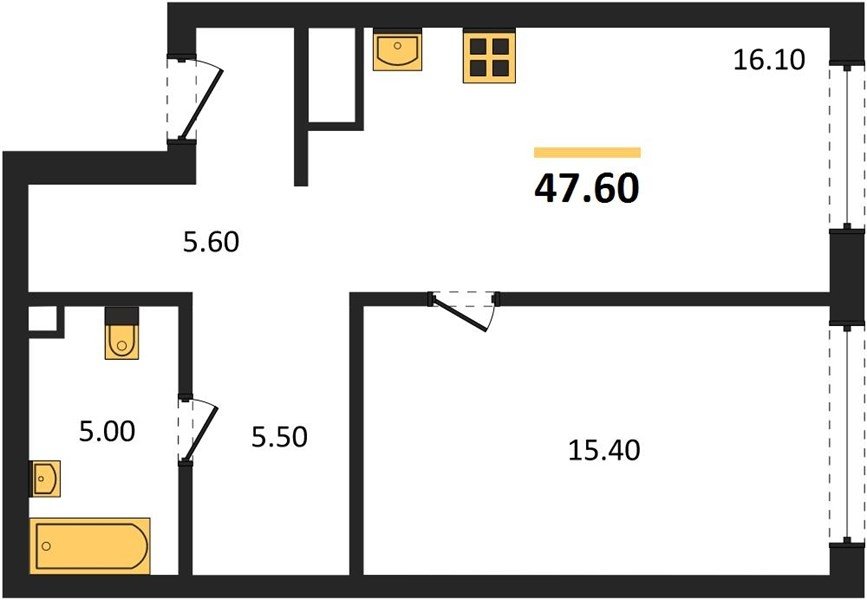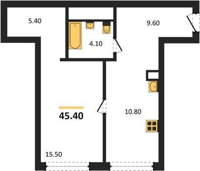 Площадь от 45.5 м2
