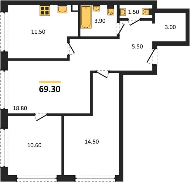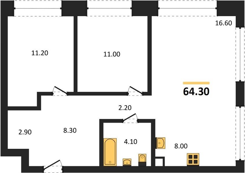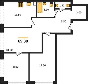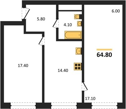 Площадь от 57.4 м2