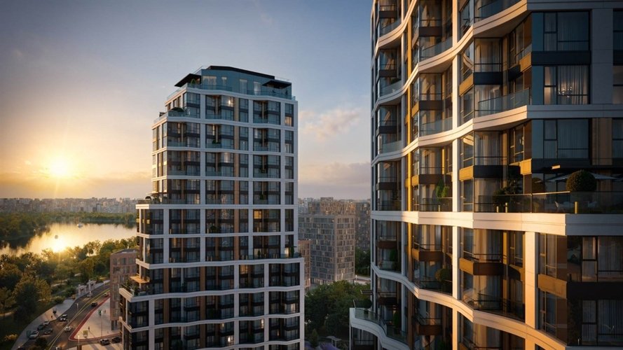 В квартале представлено более 120 планировок площадью от 40 до 192 квадратных метров. Многие квартиры имеют вид на реку. Проект включает ландшафтный дизайн, озеленение и подсветку. На территории жилого комплекса предусмотрен центральный прогулочный бульвар.