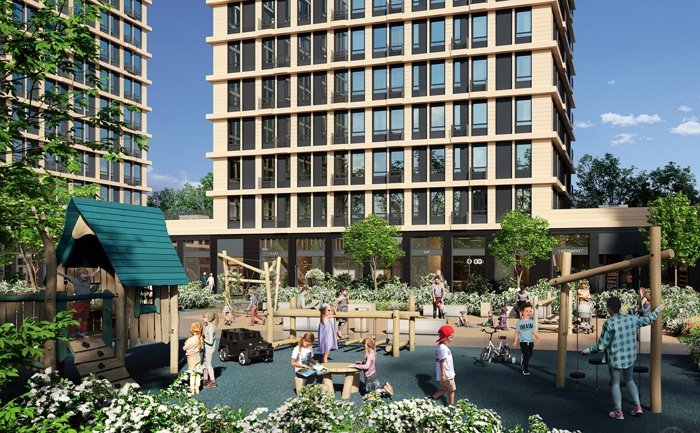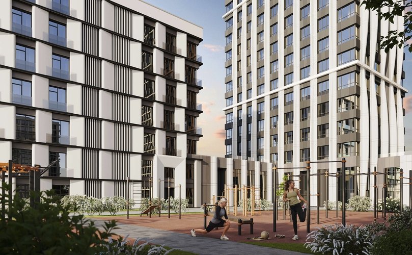 Придомовая территория создана как личное пространство с уникальным ландшафтным дизайном. Здесь есть детские площадки, зоны отдыха, пешеходные и велосипедные дорожки.
