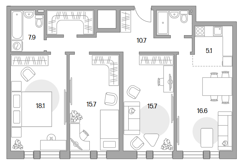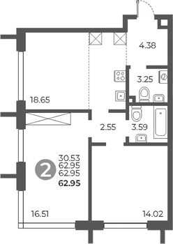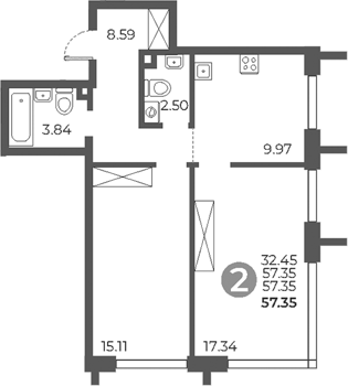 Площадь от 57.35 м2