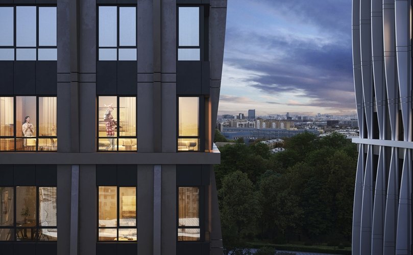 Архитекторы предложили концепцию, гармонично сочетающую динамику высоток с комфортом уютного приватного пространства. Интерьер лобби выполнен в стиле престижной роскоши и уюта. Мягкие, приглушенные тона, а также дерево и камень создают теплую, спокойную атмосферу.