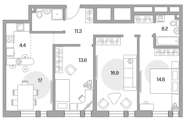 Площадь от 29.08 м2