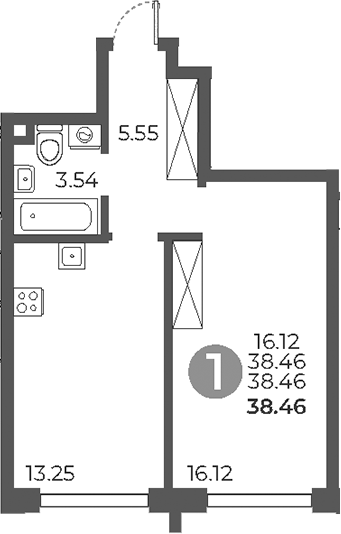 Площадь от 37.4 м2
