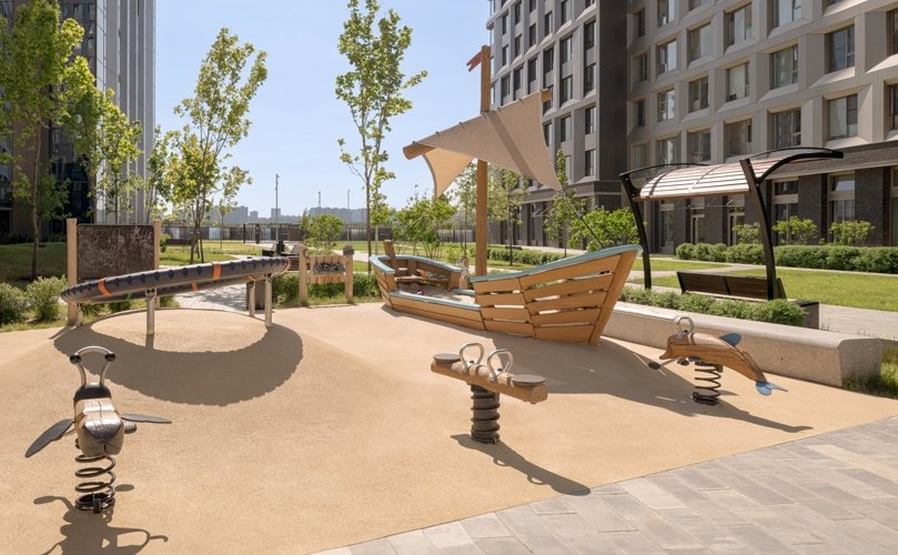 Жилой район предлагает уникальную зону отдыха у воды с прогулочными, беговыми и велосипедными дорожками, лаундж-площадками, амфитеатром и детскими площадками.