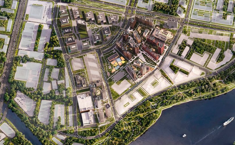 Проект создан архитектурным бюро Skidmore, Owings & Merrill, известным своим небоскребом Burj Khalifa. Ландшафтный дизайн разработан компанией Gillespies. В районе появятся центральный парк и благоустроенная набережная Москвы-реки.