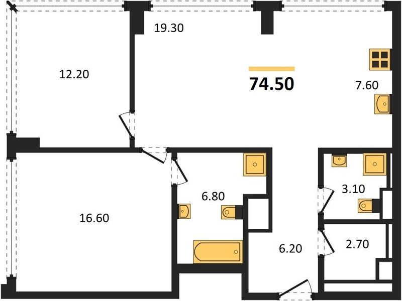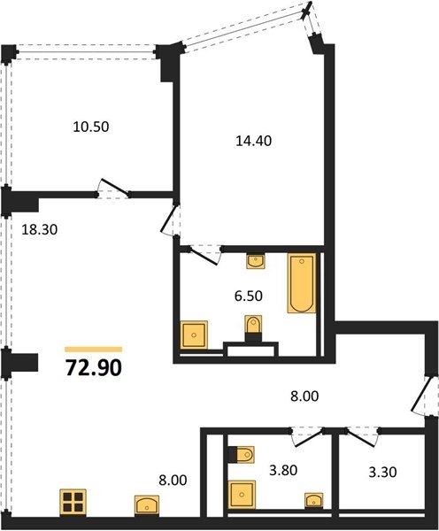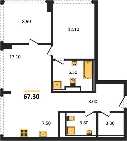 Площадь от 67.3 м2