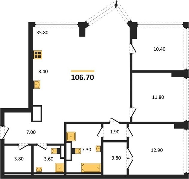 Площадь от 103.9 м2