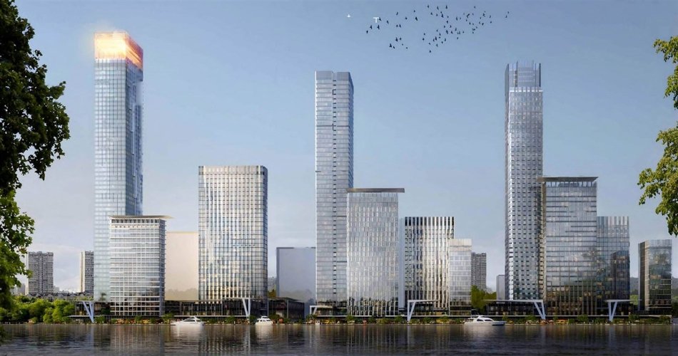 Композиция зданий создает гармоничное целое, где каждый объект имеет свои уникальные черты. Выразительные архитектурные решения сочетаются с функциональностью. Важным элементом проекта станет благоустроенная набережная.