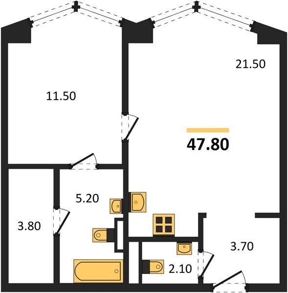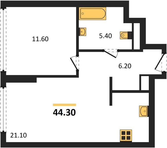 Площадь от 44.3 м2