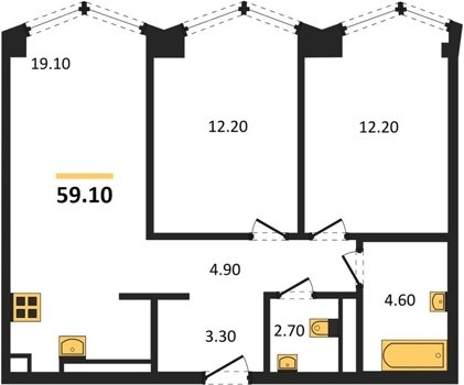 Площадь от 59.1 м2