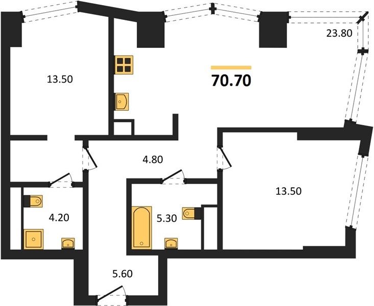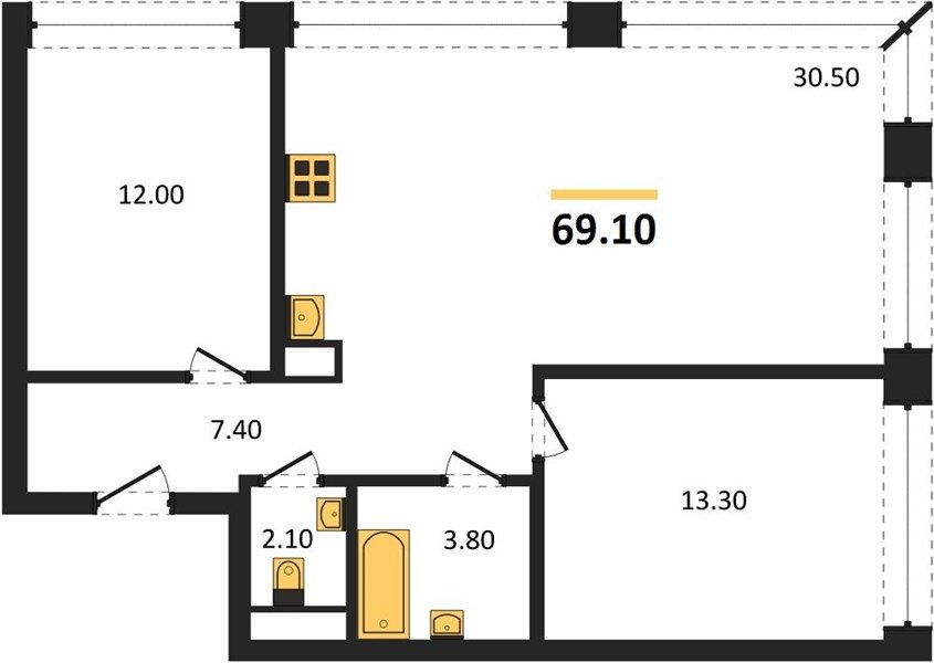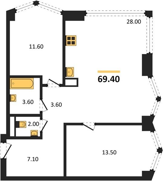Площадь от 28.8 м2
