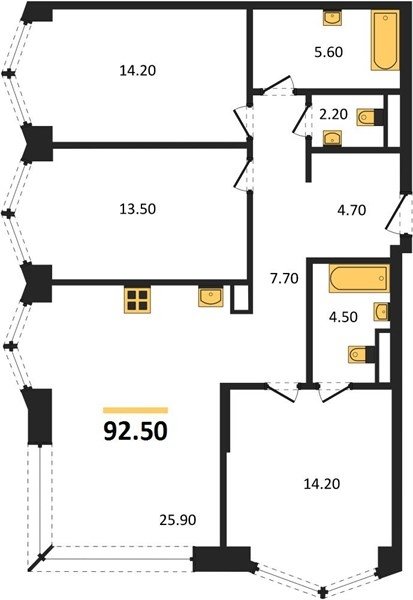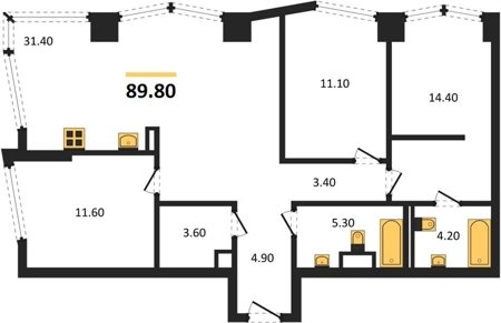 Площадь от 88.3 м2